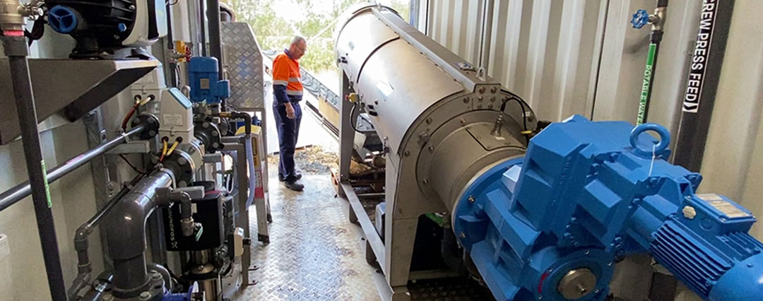 Housed within a 20-foot shipping container, the system requires only power, potable water and sludge feed connections for commissioning. No permanent infrastructure is required, making it suitable for: